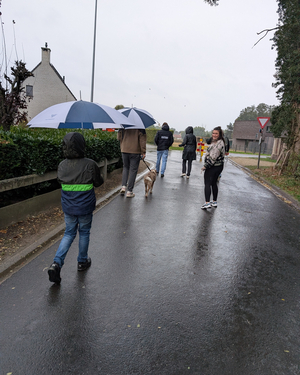 De route was landelijk, de regen onverbiddelijk, maar het enthousiasme des te groter. Na afloop warmden we ons op met een hapje en een drankje, een welverdiende beloning voor onze inzet.