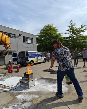 Veiligheid & welzijn ook vlak voor het bouwverlof! Net voor het bouwverlof kregen onze arbeiders een praktijkgerichte opleiding ππ‘πͺπ¨π€ππππ£ππ£πππ£ via partner ORA Group. Fabian gaf uitleg over de verschillende soorten blustoestellen en iedereen kon zelf aan de slag.